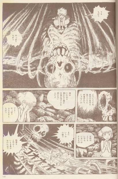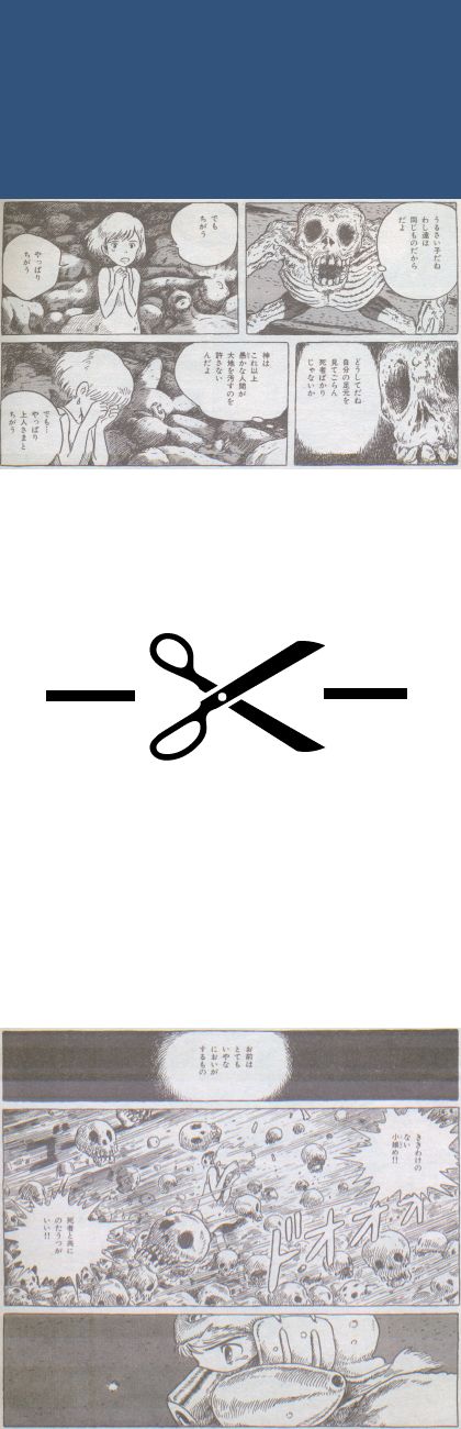 | As you can see, the original publication of Nausicaa's encounter with "the Nothingness" was expanded and completely reworked. Only three of the first four panels from the original were used in the revision. |